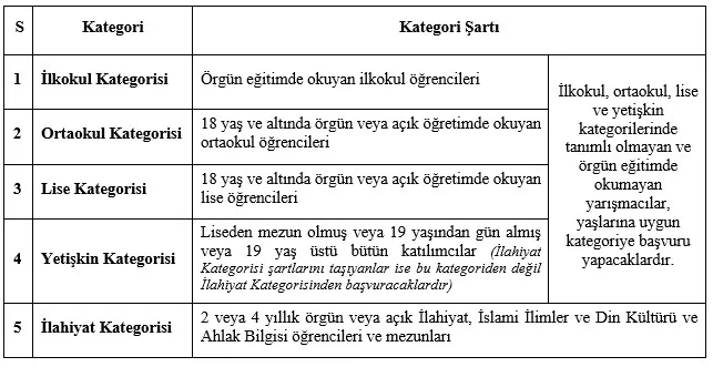 1. İlkokul, Ortaokul, Lise, Yetişkin ve İlahiyat Kategorisi