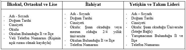 e.3. Yetişkin ve İlahiyat kategorisinin derecelendirmeleri de yine kendi içerisinde yapılacak; Türkiye, il ve ilçe kırılımında üç (3) ayrı bölümde puanlama olacaktır.